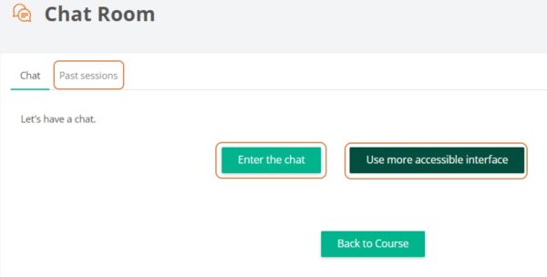 - The chat room will be displayed. You can “Enter the chat”, “Use more accessible interface” or go to “Past sessions”.