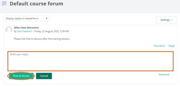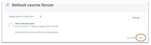 - Click “Reply” on the page of discussion topic.