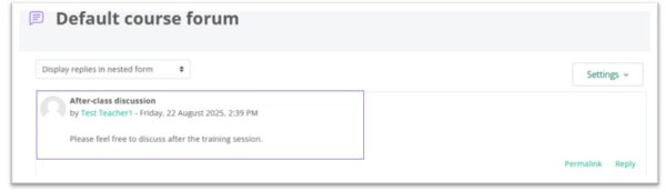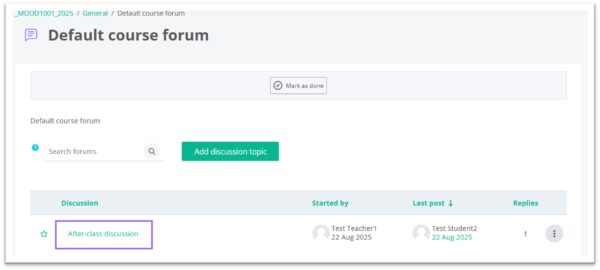 - Click the name of forum on the course homepage.