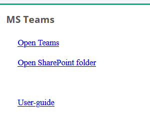 Click “Open SharePoint folder” in the “MS Teams” block to open the SharePoint site.