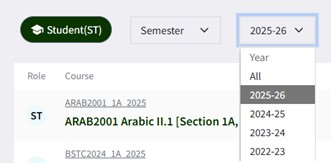- If you wish to access your Moodle courses in another academic year, please choose the year from the pull-down menu.